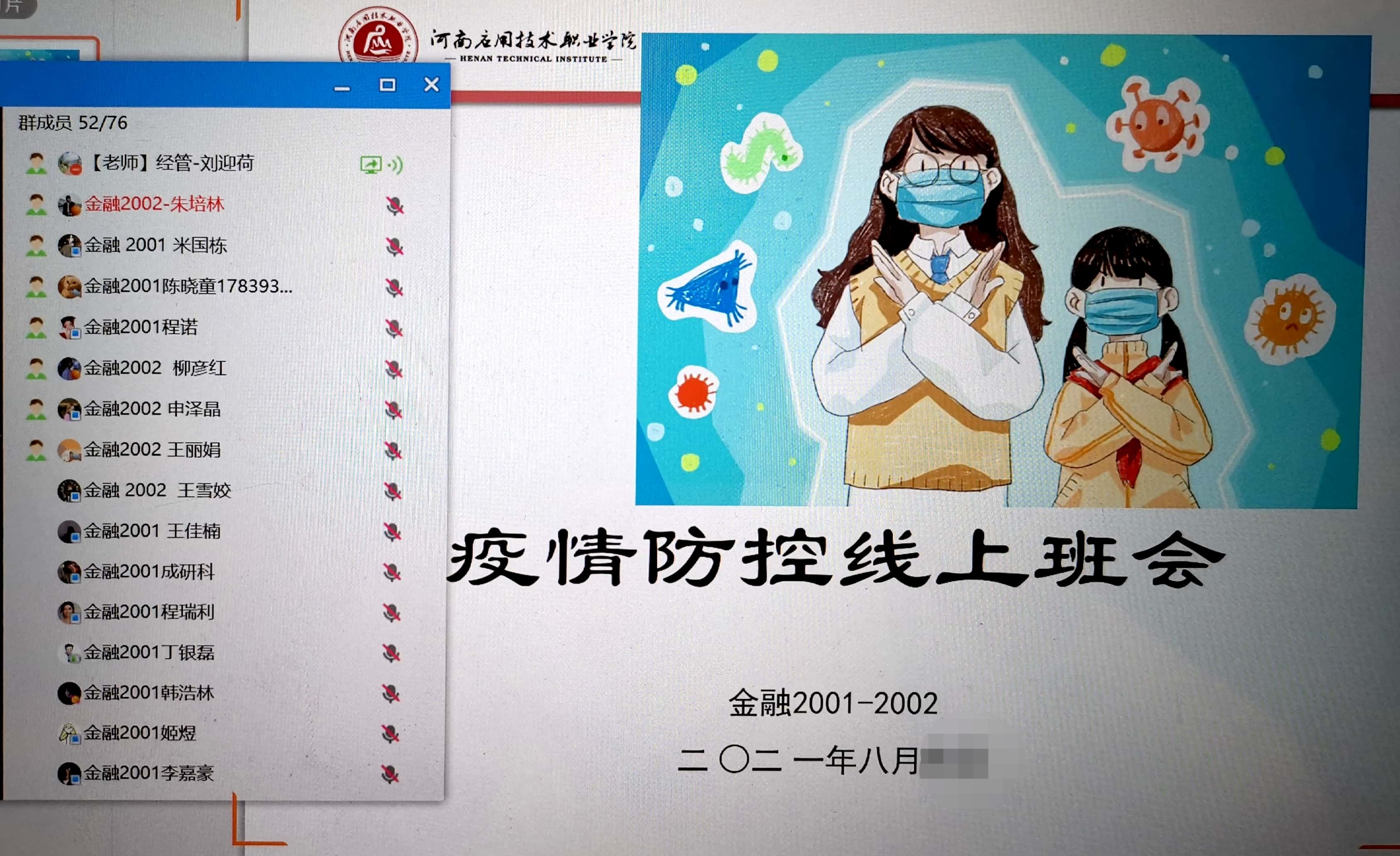 基于当前新冠肺炎疫情形势变化复杂,为进一步落实学校疫情防控工作要求,持续加强老员工思想政治教育,帮助同学们顺利度过一个充实、愉快、安全的假期,威廉希尔19级、20级全体班主任、辅导员于8月1日、2日两天,组织各班召开了线上疫情防控暨征兵宣传主题班会。